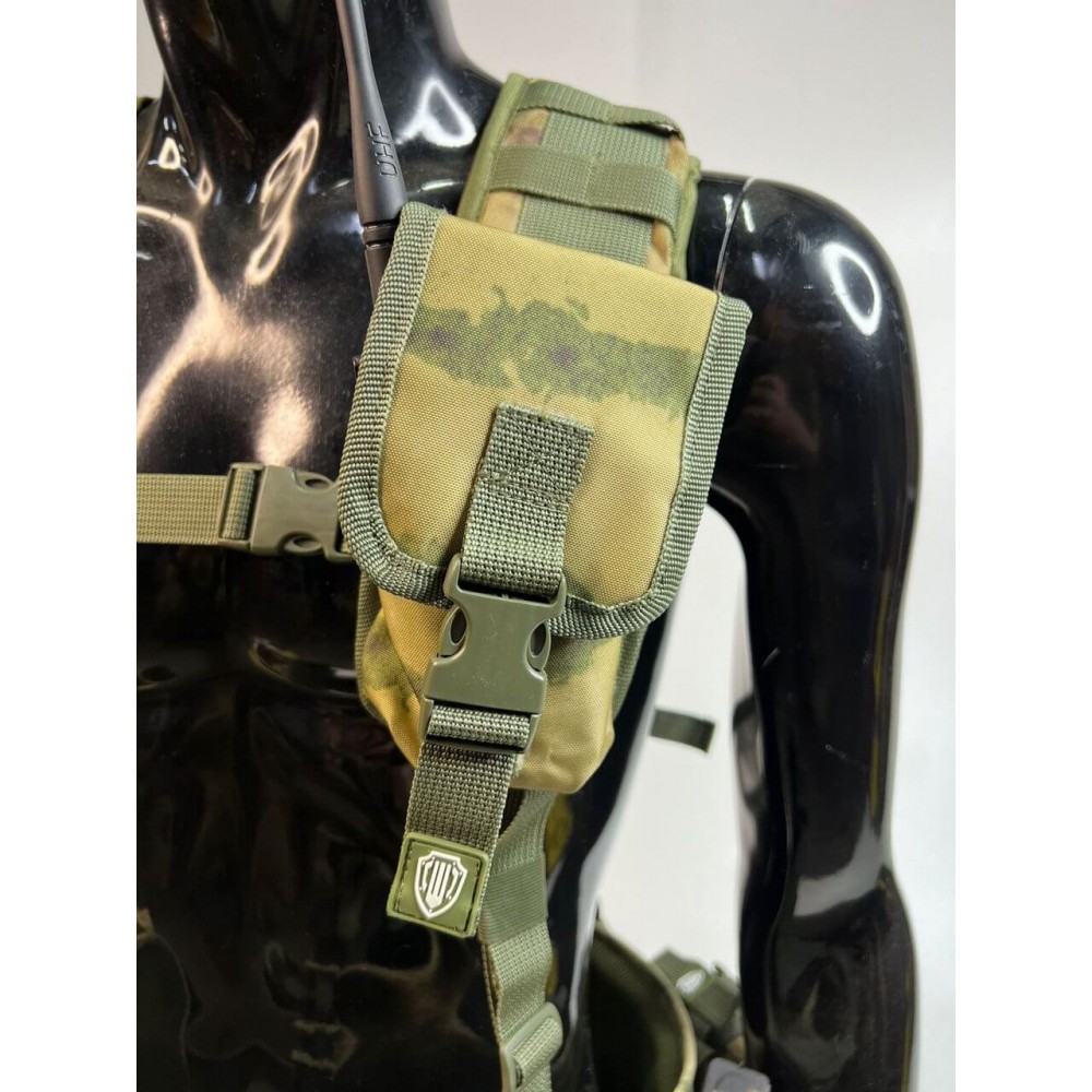 - Удобные застежки: Система имеет удобные застежки на груди и талии, что позволяет легко надевать и снимать разгрузку.