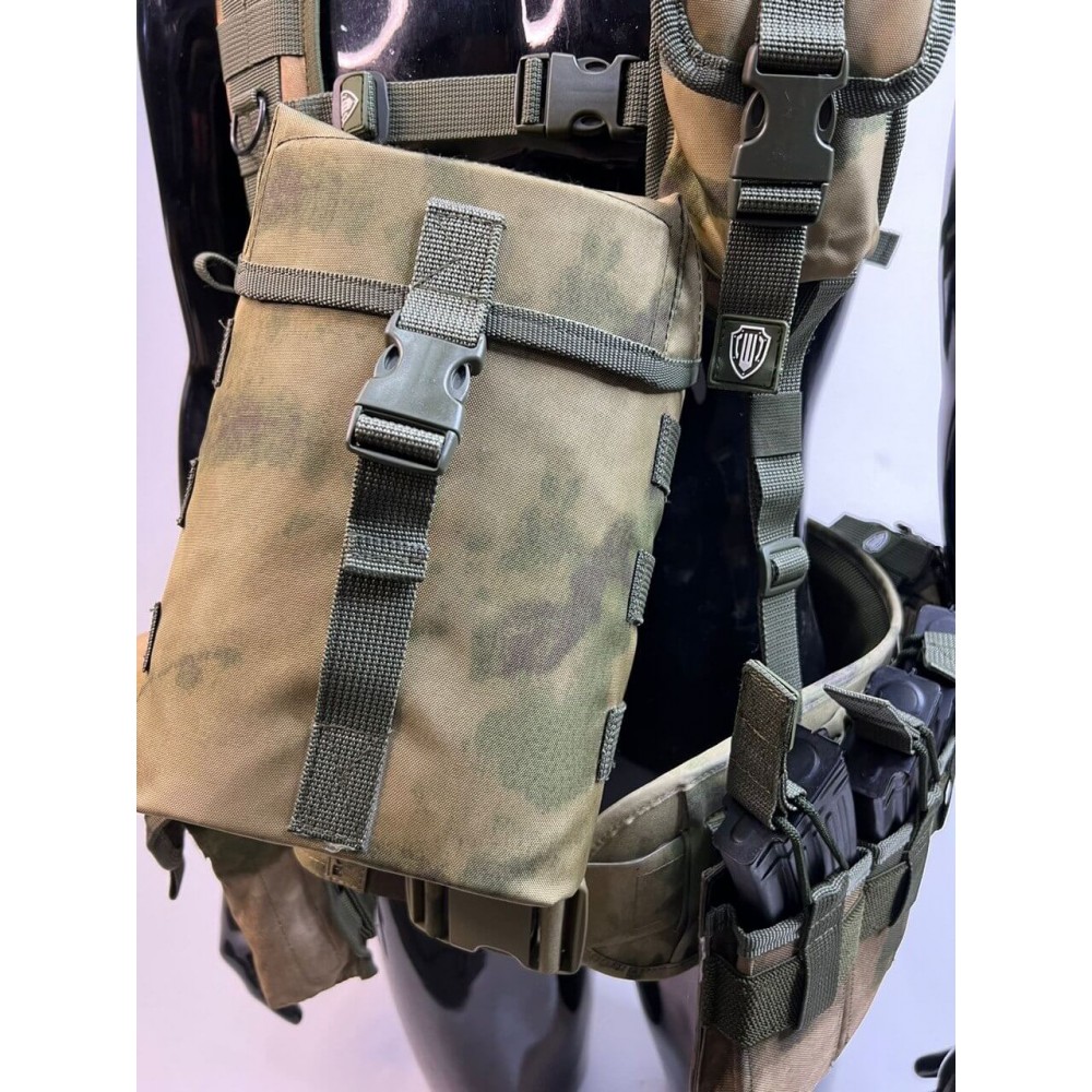 - Адаптивность и заменяемость: Карманы предусматривают слив воды и легко снимаются, что позволяет заменять их другим необходимым снаряжением, включая пулеметные коробки под 100 патронов или ленты на 200 патронов.