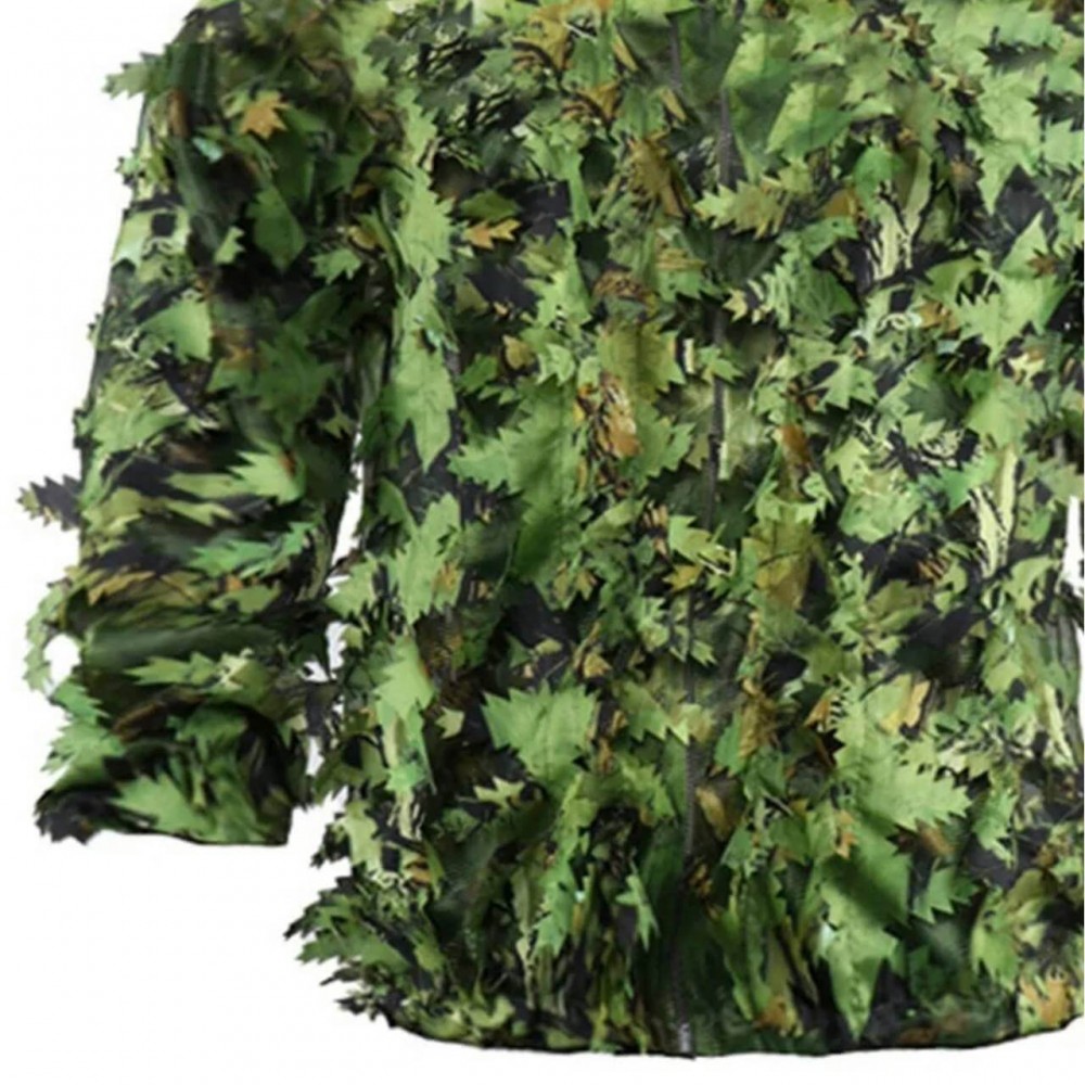 - Материал: Маскировочный костюм выполнен из прочного и дышащего полиэфирного волокна. Этот материал обеспечивает долговечность костюма и комфорт в любых погодных условиях.
